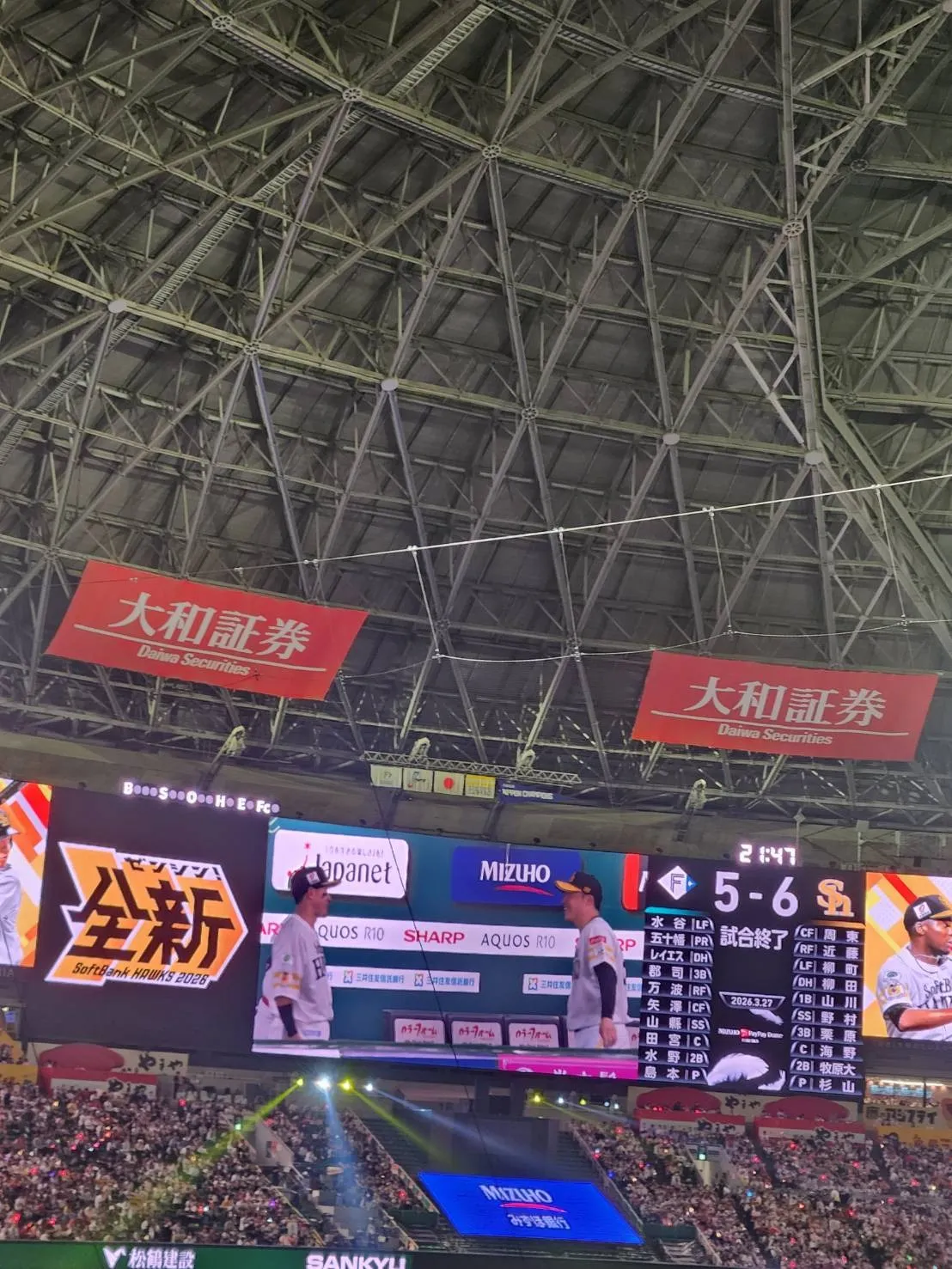 ソフトバンクホークスと日本ハムの開幕戦の写真です・・⚾